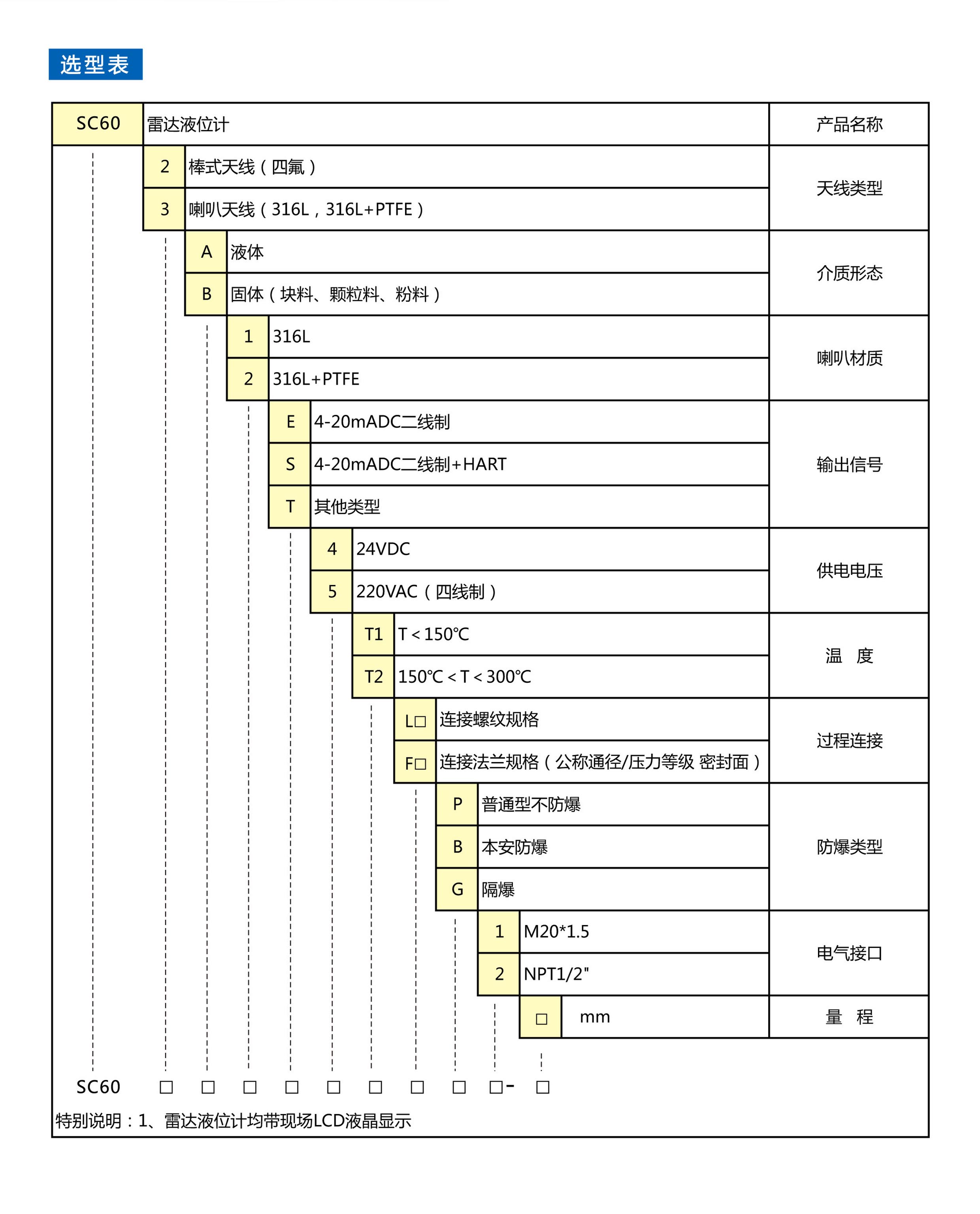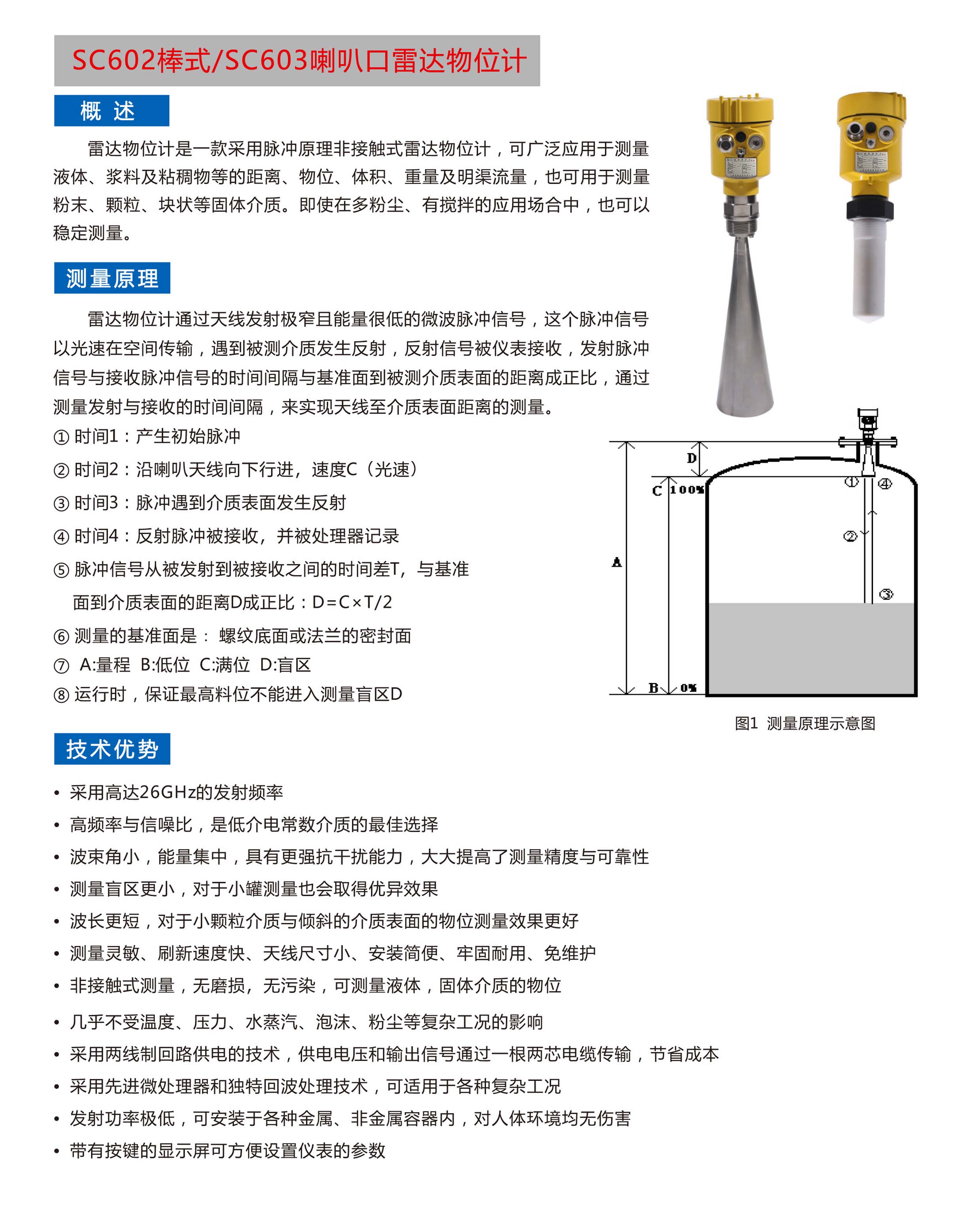名称:SC-602棒式/SC-603喇叭口雷达物位计